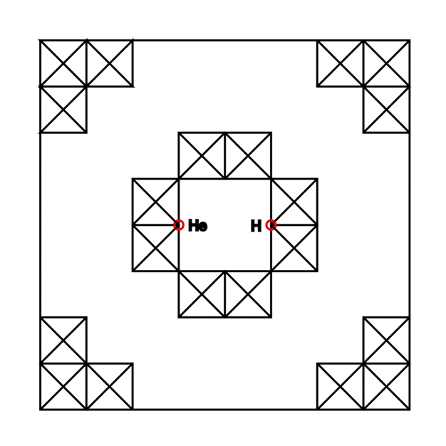 Kommen auf den Kleinquadraten weitere Protonen hinzu, bestehen die Gerüststangen dann aus den Grundseiten und den Diagonalen der jeweiligen Kleinquadrate.