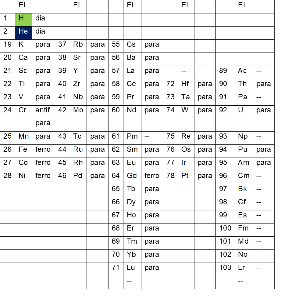Tab.11:          Äußerer Elektronenring, magnetische Eigenschaften